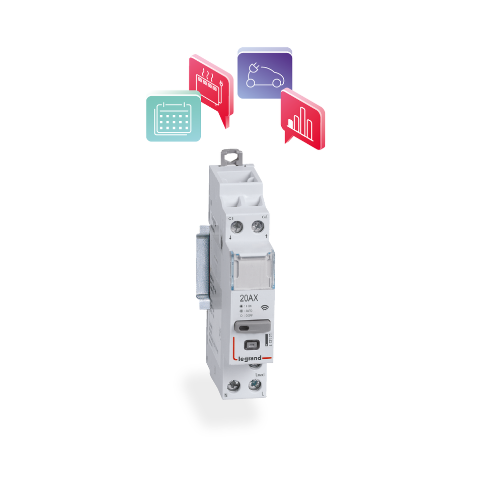 - Auswahl zwischen Hoch-/Niedertarif Laststeuerung** im Automatikmodus oder herkömmliches ON/OFF-Schütz (per App Home + Control).