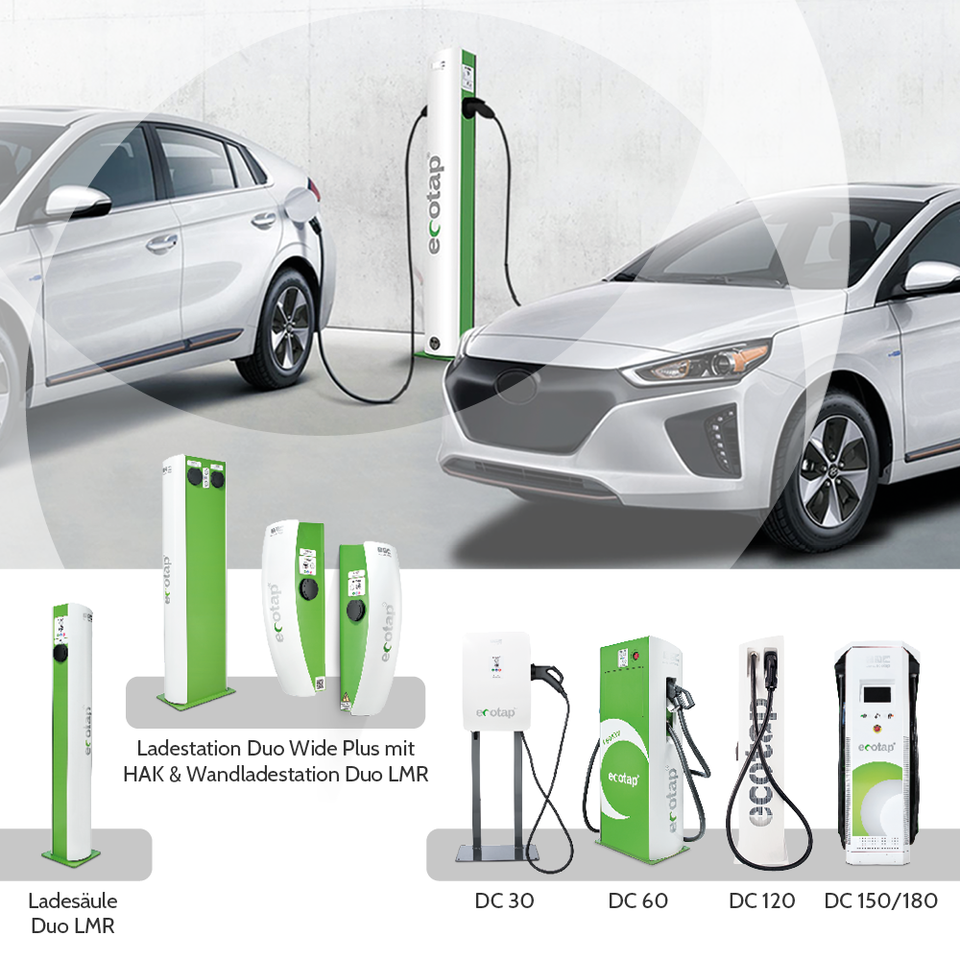 Das Schnellladegerät Ecotap® DC 150 kann für alle Elektrofahrzeuge mit CCS-Anschluss verwendet werden.